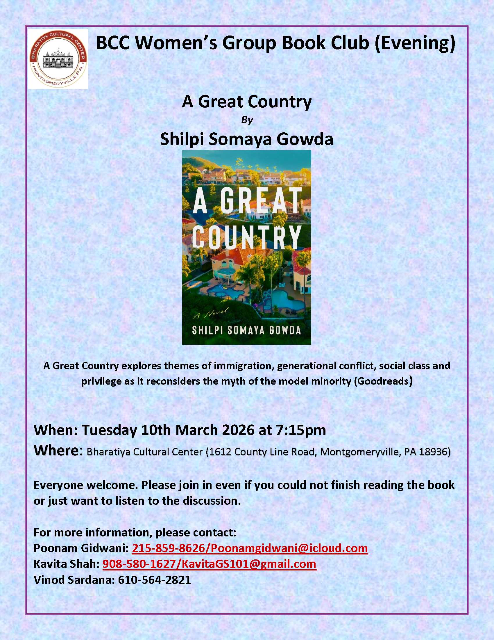 Book Club March-10th7:15 p.m - Bharatiya Temple