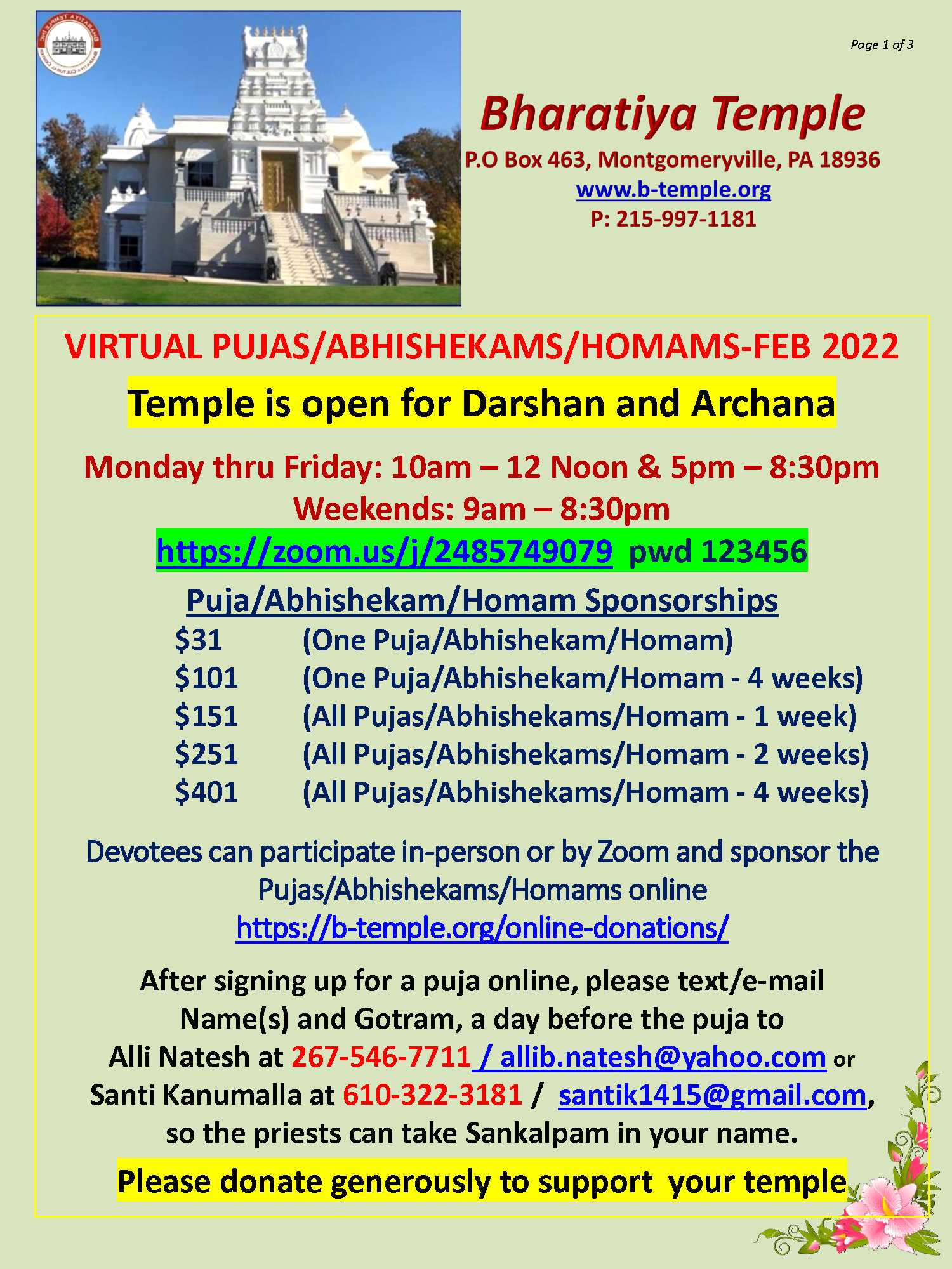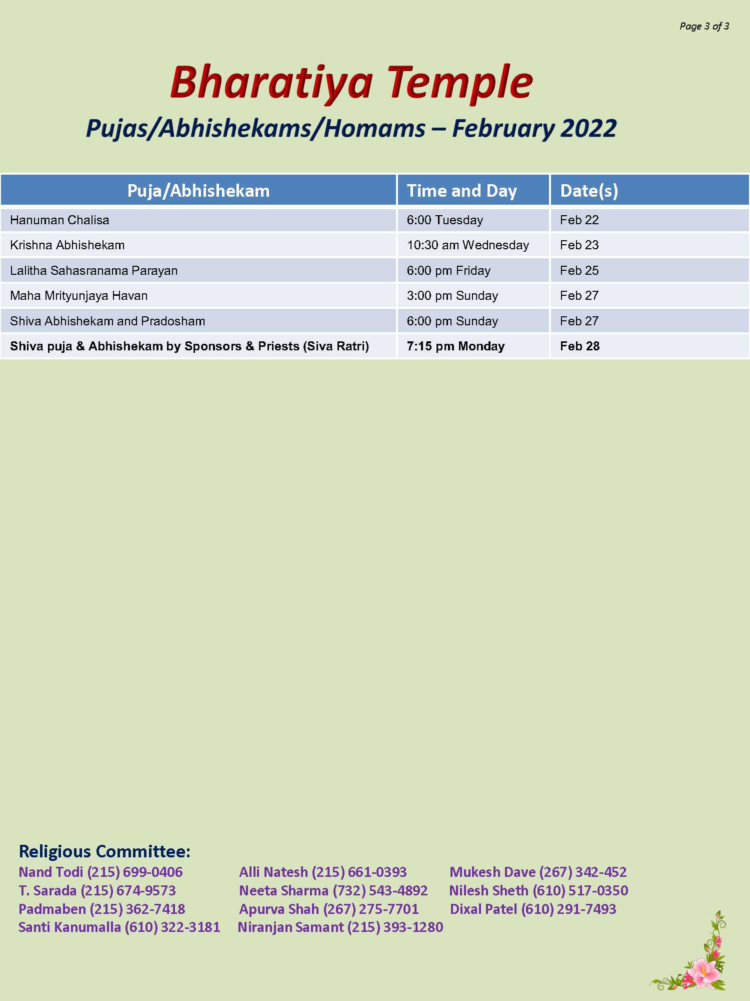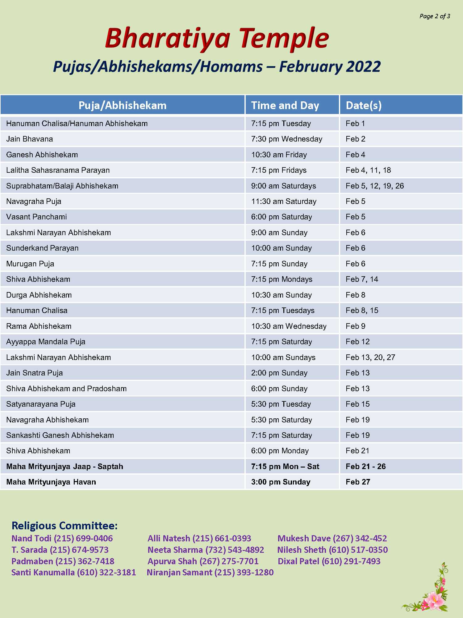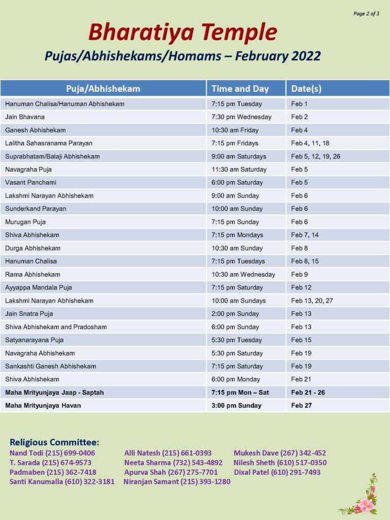 January 14, 2022 by admin Posted in Past | Comments Off on February Puja Schedule