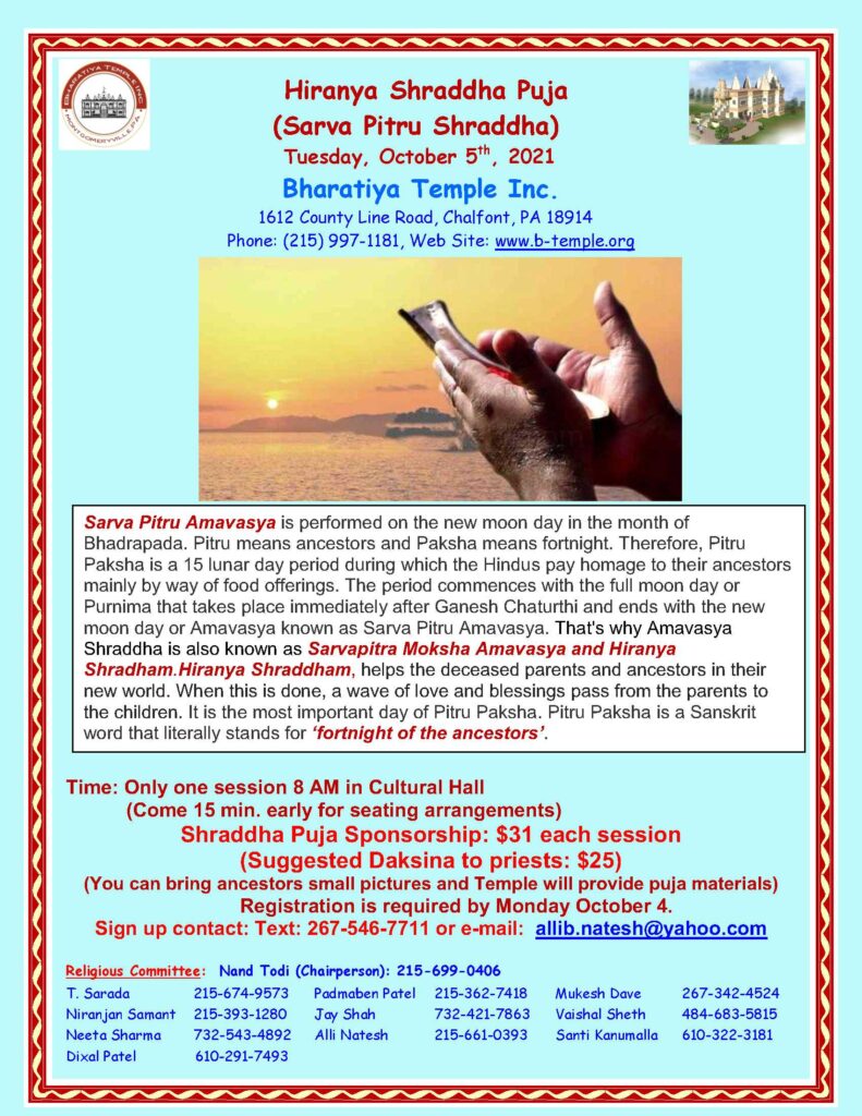 September 27, 2021 by admin Posted in Past | Comments Off on Hiranya Shraddha Puja
