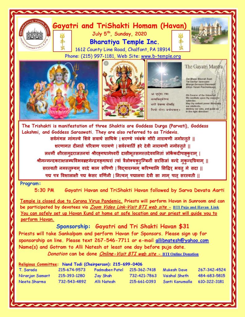 March 23, 2020 by admin Posted in Past | Comments Off on Gayatri & Trishakti Homam