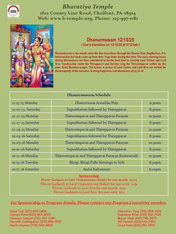 DhanurmasamDec-15th to Jan-17th - Bharatiya Temple
