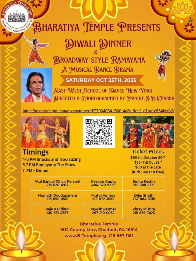 Diwali DinnerOct-25th4:00 p.m - Bharatiya Temple