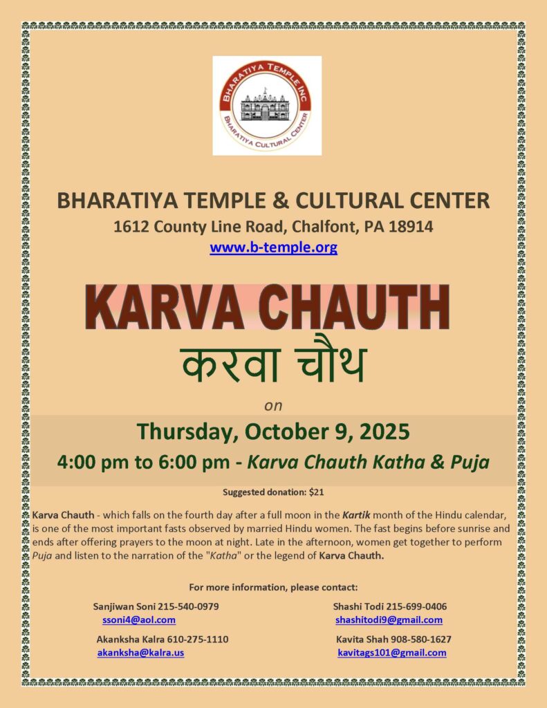 Karva ChauthOct-9th4:00 p.m - Bharatiya Temple