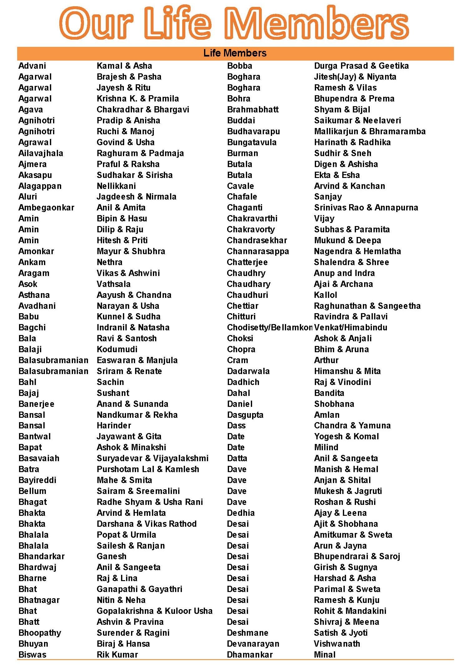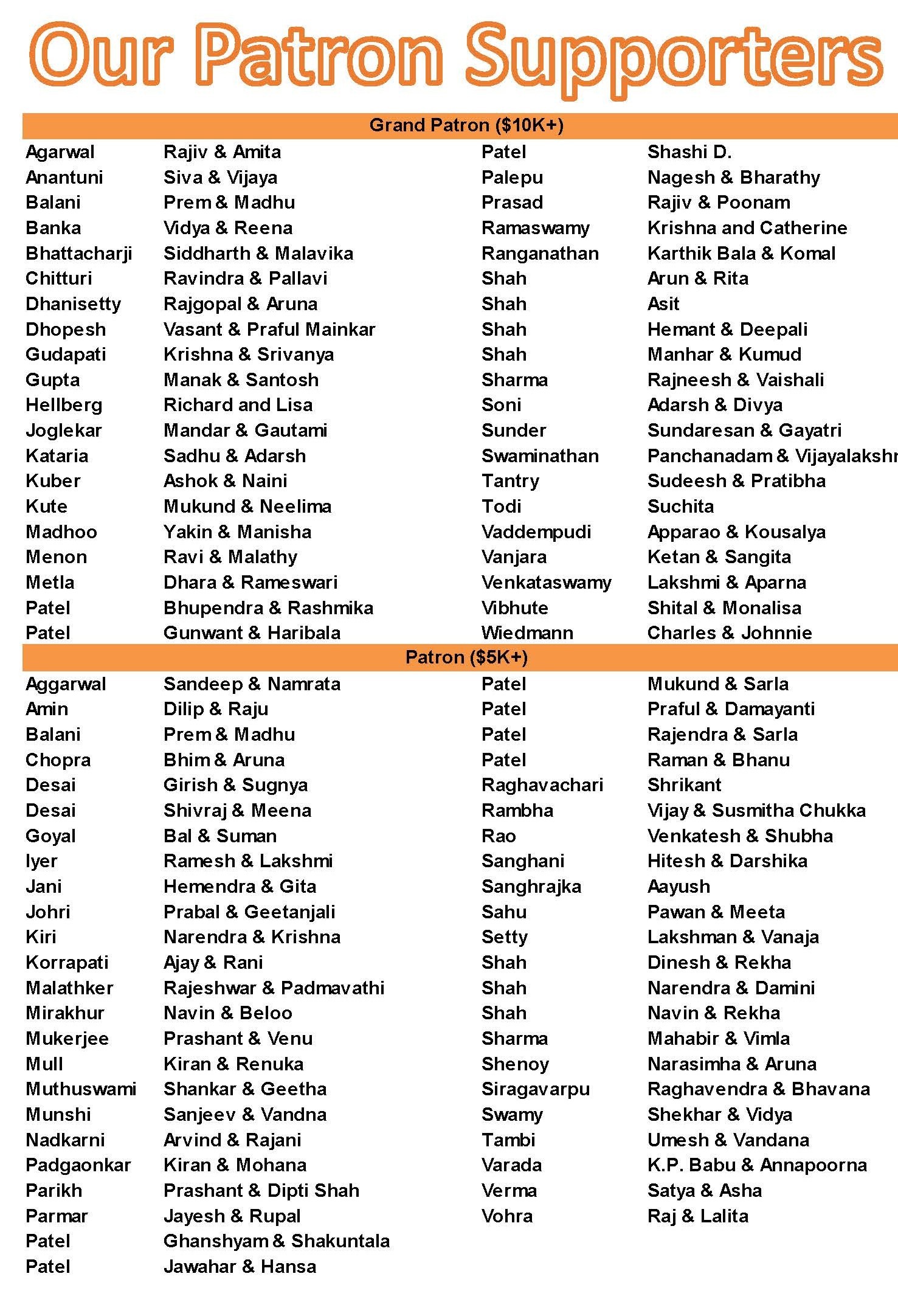Bharatiya Temple and Cultural Center recognizes many other supporters who have spent priceless time and contributed financially by sponsoring puja’s, donating and participating in fundraisers, and donating in the hundi since the inception of BTI and BCC. Without everyone’s effort, this project could not have been possible. Below is a list of all current members.