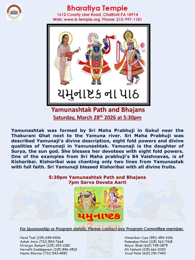 Yamunashtak Path March-28th5:30 p.m - Bharatiya Temple