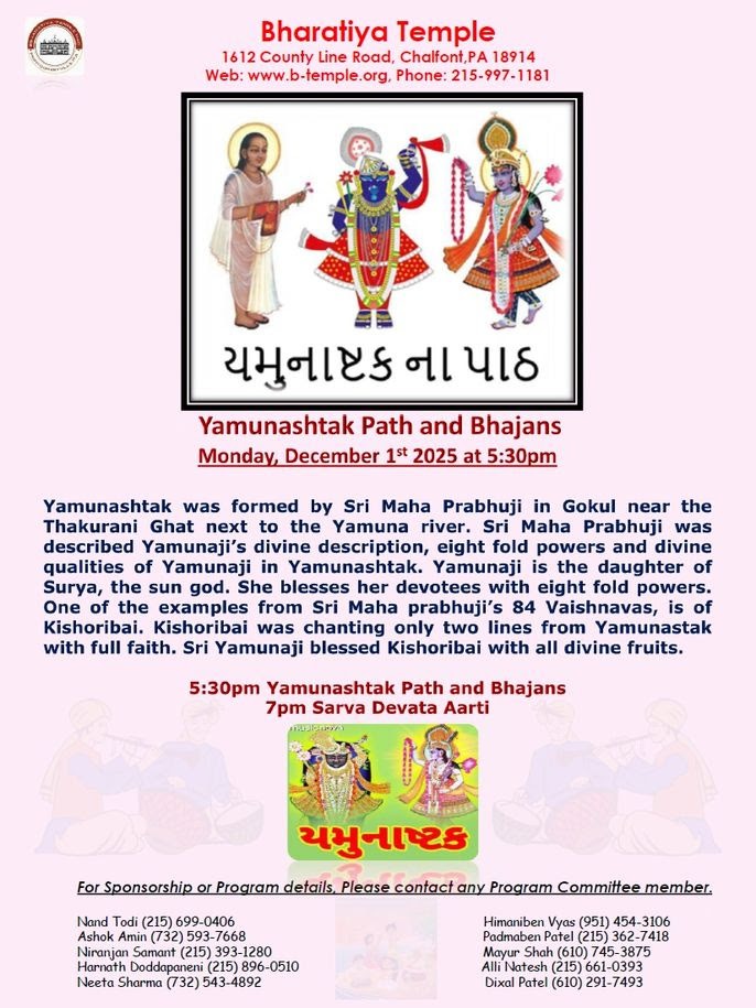 Yamunashtak PathDec-1st5:30 p.m - Bharatiya Temple